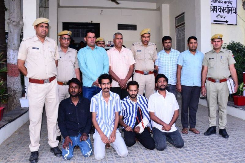 सीकर. खाटूश्यामजी कस्बे के लिखमा का बास में एक महीने पहले सेवानिवृत्त फौजी के ब्लाइंड मर्डर केस को खाटूश्यामजी सदर थाना पुलिस ने व डीएसटी टीम ने खोल दिया है। पुलिस ने एक आरोपी को आगरा व तीन को फर्रुखाबाद उत्तरप्रदेश से गिरफ्तार कर लिया है। आरोपियों ने बड़ी मात्रा में नकदी लूटने के लिए साजिश रचकर सेवानिवृत्त फौजी की कुल्हाड़ी से सिर काटकर हत्या की थी। हालांक कुत्तों के भौंकने के चलते आरोपी डर के मारे वहां से नकदी लिए बिना भी भाग गए थे। पुलिस अधीक्षक डीआईजी भुवन भूषण यादव ने शुक्रवार को पत्रकार वार्ता कर मामले का खुलासा किया है।