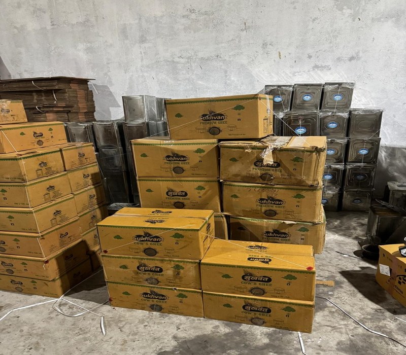 खाद्य एवं औषध विभाग (गुजरात) के आयुक्त डॉ. एच.जी. कोशिया ने बताया कि पूर्व सूचना के आधार पर रविवार को खाद्य एवं औषध विभाग व स्थानीय अपराध शाखा (एलसीबी) की टीमों ने संयुक्त रूप से नवसारी जिले के बारडोली रोड पर औंची गाम स्थित शिव फूड प्रोडक्ट नामक कंपनी में छापा मारा। घी बनाने वाली इस कंपनी में सुखवंत ब्रांड के घी में पामोलिन तेल की मिलावट की आशंका थी। मौके पर पामोलिन तेल के 10 पीपे भी बरामद किए गए हैं।