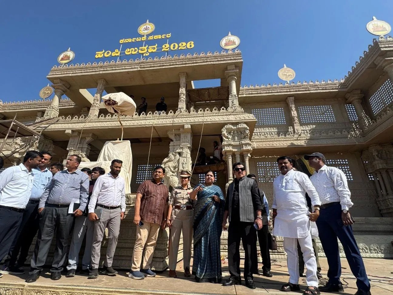 हम्पी में उत्सव के मंच और तैयारियों का जायजा लेते हुए जिला प्रभारी मंत्री जमीर अहमद खान।