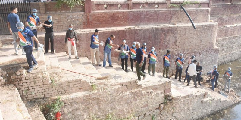 राजस्थान पत्रिका के अमृतंजलम अभियान का आगाज रविवार को हुआ। गोपेश्वर बस्ती िस्थत भादाणी बगीची परिसर में प्राचीन तलाई में स्वच्छता एवं श्रमदान कार्य हुआ। प्रात: 7.15 बजे प्रारंभ हुए अभियान में नगर की विभिन्न संस्थाओं, संगठनों, ट्रस्ट, स्वच्छता एवं पर्यावरण संरक्षण सहित विभिन्न क्षेत्रों से जुड़े लोगों ने श्रमदान किया। इस दौरान साफ-सफाई कर कचरे का संग्रहण व निस्तारण किया गया। कंटीली झाडि़यां व झाड-झंकाड को हटाया गया। बारिश के दौरान तालाब में आने वाले पानी के मार्ग को सुचारू किया गया। अभियान में महिलाओं की भी भागीदारी रही।