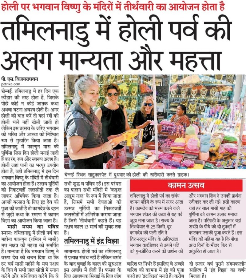 तमिलनाडु में हर दिन एक त्यौहार की तरह होता है, जिसके पीछे कोई न कोई जातक कथा अथवा घटना अवश्य होती है। अगर होली की बात करें तो यहां रंगों की होली भले नहीं खेली जाती हो लेकिन इस उत्सव के जरिए भगवान की भक्ति और आस्था को निश्चित रूप से मुखरित किया जाता है।