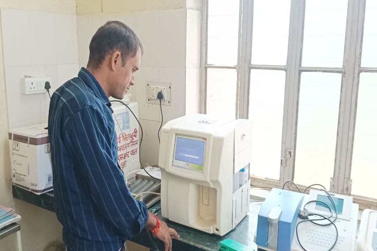 देई. राजकीय सामुदायिक स्वास्थ्य केन्द्र में सीबीसी जांच मशीन को ठीक करते हुए।