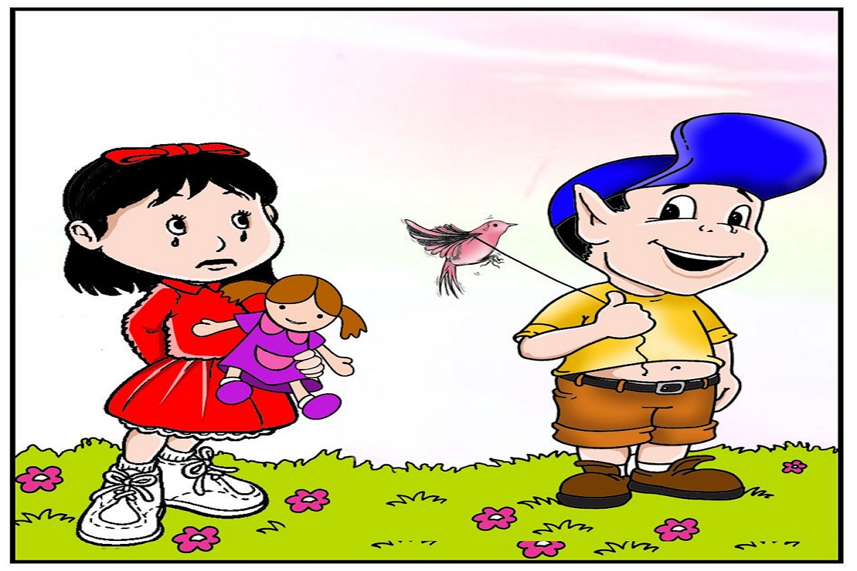 मैं पार्क खेलने गया, तो मुझे एक अजीब घटना देखने को मिली। मैंने देखा एक लड़की अपनी गुड़िया के साथ खेल रही थी। वह बहुत खुश दिख रही थी। अचानक एक लड़का वहां आया। उसके पास एक चिड़िया बंधी हुई थी, जो शायद उसने पकड़ ली थी। वह उस चिड़िया को इधर-उधर दिखा रहा था और हंस रहा था। लड़की ने उसे देखा और कहा, चिड़िया को छोड़ दो। यह उड़ना चाहती है। लेकिन लड़के ने उसकी बात नहीं मानी। वह बोला, यह मेरी चिड़िया है।