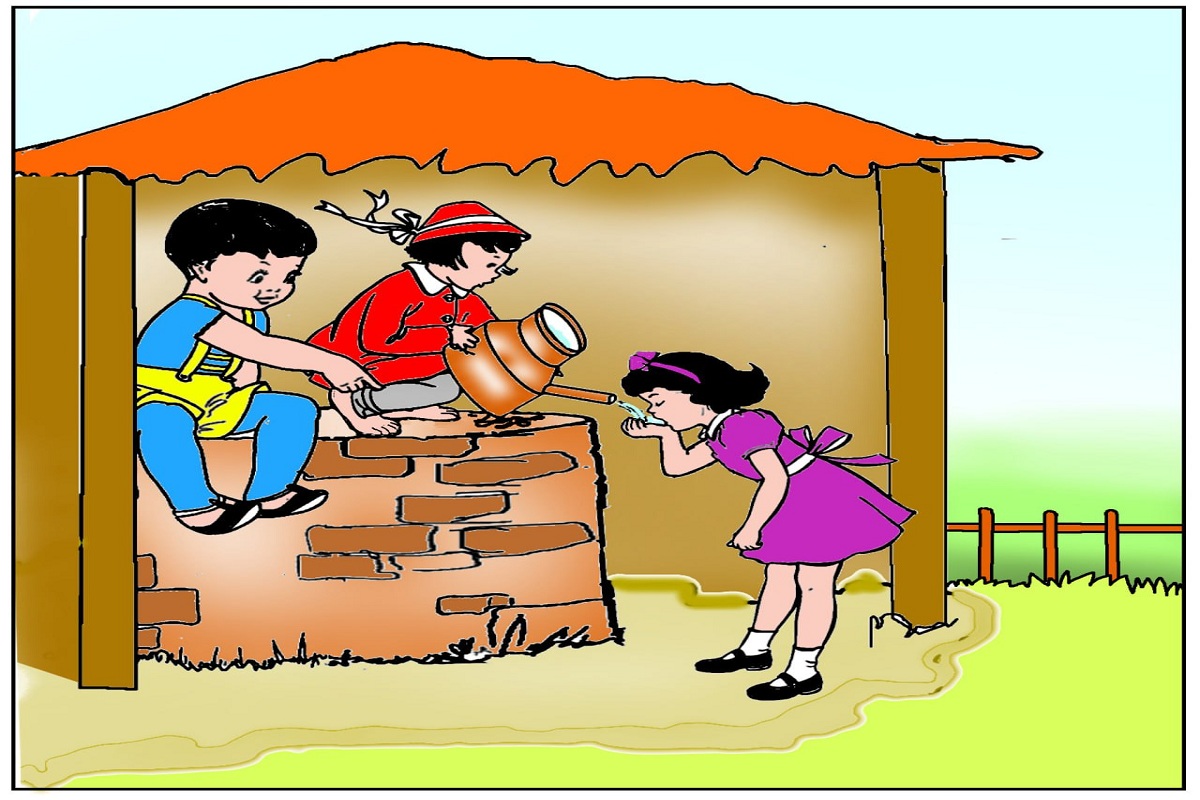 एक छोटा सा गांव था। वहां तीन दोस्त रहते थे। केशव, श्याम और मीनल। गर्मी बहुत ज्यादा पड़ रही थी। गांव में पानी की कमी थी। वहां सिर्फ एक पुराना कुआं था। तीनों दोस्त वहां गए। केशव कु एं से पानी निकालने लगा। श्याम ने केशव की मदद की। मीनल पास में खड़ी होकर देख रही थी और अपनी प्यास बुझाने का इंतजार कर रही थी।