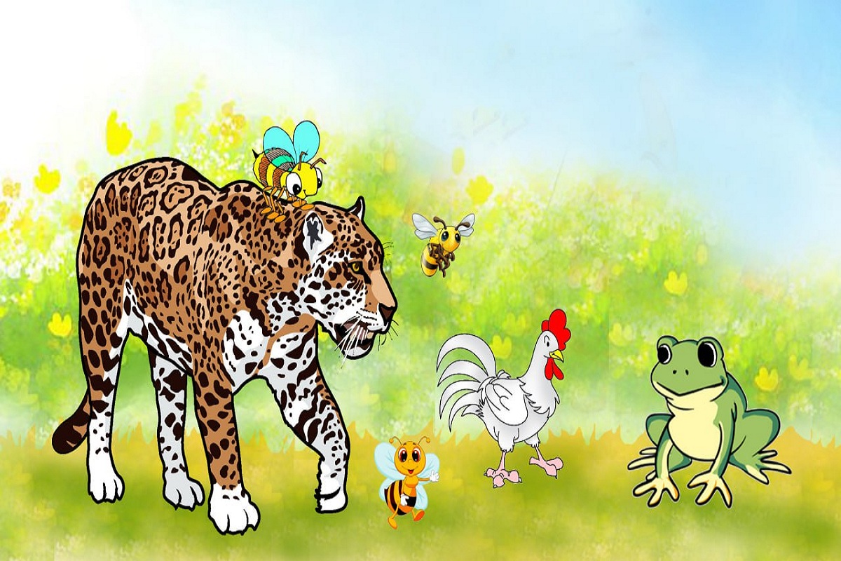 एक बार की बात है। एक घने जंगल में एक तेंदुआ रहता था। वह अपनी ताकत और शिकार के लिए मशहूर था। एक दिन वह जंगल में घूम रहा था। तभी एक मधुमक्खी उसके ऊपर आकर बैठ गई और बोली, 'तुम अपनी ताकत पर गर्व करते हो, लेकिन हम छोटे जीव भी बहुत महत्त्वपूर्ण हैं। तभी वहां एक मुर्गा और मेंढक भी आ गए। मुर्गा बोला, 'तेंदुए भाई, हम भी अपनी-अपनी तरह से जंगल में योगदान देते हैं।