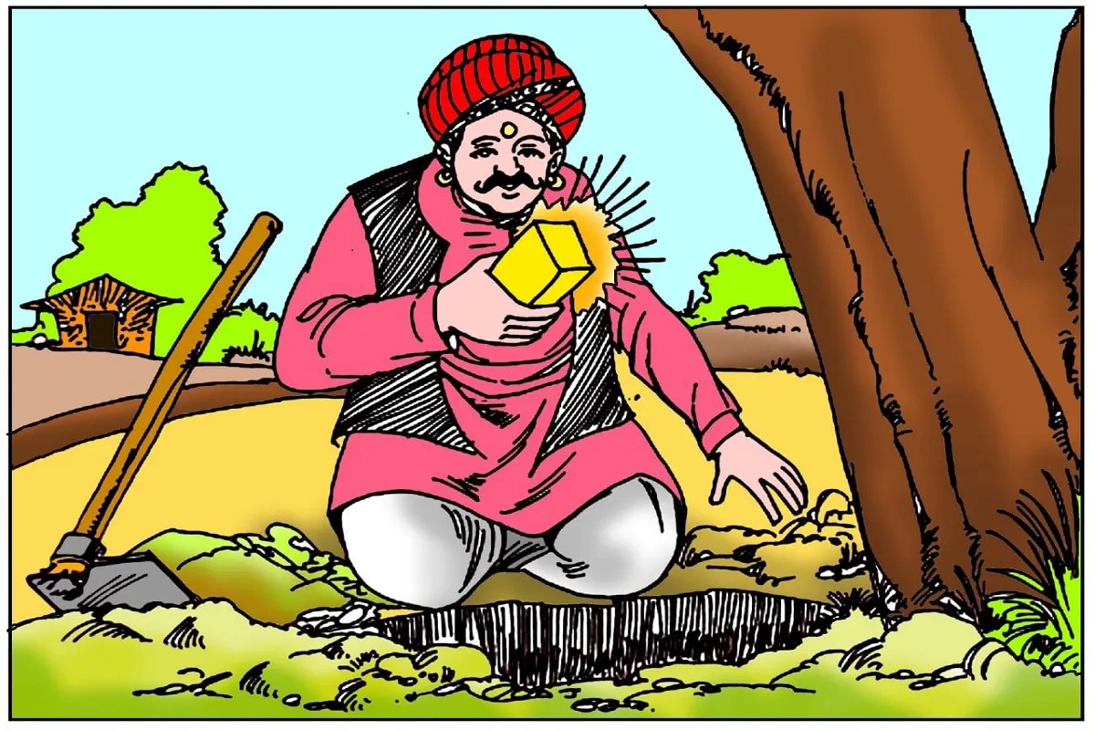एक गांव में दयालु आदमी रहता था। गांव में एक पेड़ था। पेड़ की उसको जड़ चाहिए होती है, वह जब गड्ढा खोदता है, तो उसका फावड़ा किसी चीज से टकराता है। वह हाथ से मिट्टी हटाता है तो उसे चमकीली चीज नजर आती है। वह चमकीली चीज को उठाता है। वह आदमी समझ जाता है कि उसको कुछ कीमती चीज हाथ लगी है। वह चमकीली चीज उठाता है और वह सोचता है कि मैं गांव के हर व्यक्ति की सहायता दूंगा, हर एक की मदद करूंगा।