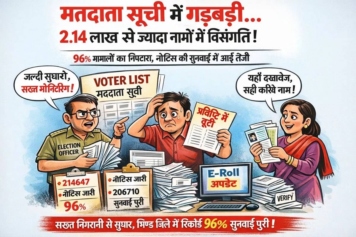 भिण्ड. मतदाता सूची के गहन पुनरीक्षण कार्य में जिले में 2.14 लाख से ज्यादा मतदाताओं के नामों की प्रविष्टियों में विसंगतियां सामने आने के बाद नोटिस जारी कर जरूरी दस्तावेज मांगे गए। हालांकि नोटिस दो लाख 25 हजार 917 को जारी होने थे।