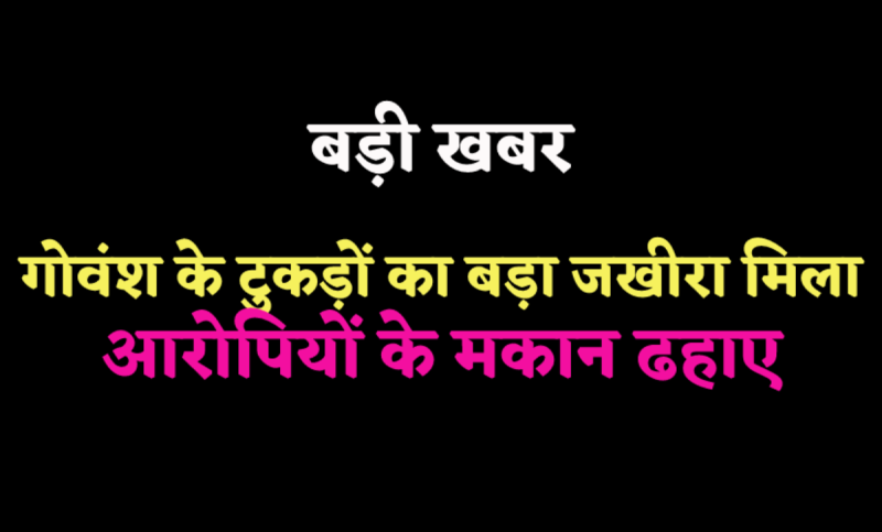 पुलिस ने गांव में देर रात दबिश दी थी। छापामार कार्रवाई में गांव के 11 मकानों में गोवंश के टुकड़े मिले। इसके बाद पुलिस ने 11 अलग अलग केस दर्ज किए। रात में कई आरोपी भाग गए। सुबह होते ही वरिष्ठ पुलिस और प्रशासनिक अधिकारी गांव में आए और आरोपियों के मकानों का ढहाने का काम शुरु कर दिया।