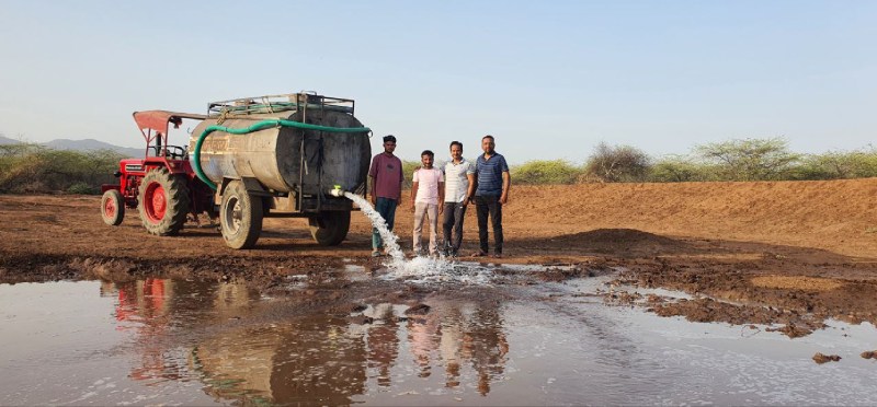 सिरोही. वाडा खेड़ा वन क्षेत्र में कृत्रिम जलाशय को पानी के टैंकर से भरते जिंदगी एक मिशन संस्था के युवा।
