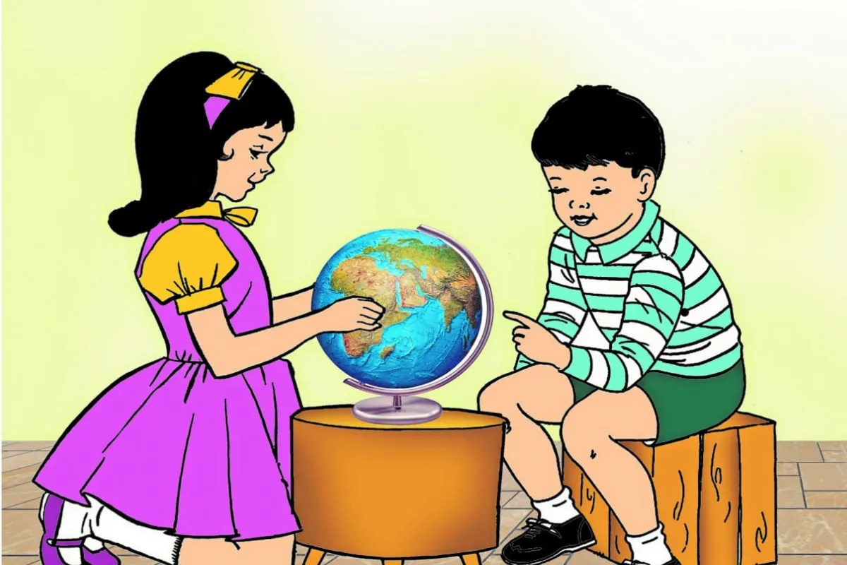 नन्हे अंशु ने अपनी छोटी बहन एंजल को ग्लोब के माध्यम से पृथ्वी का मॉडल समझाया। उसने बताया कि नीला रंग महासागर और हरा रंग भूमि को दर्शाता है। अंशु ने ग्लोब पर भारत को खोजा और बताया कि हमारा देश एशिया महाद्वीप में है। उसने एंजल को भारत की विविधता के बारे में बताया—कि यहां अलग-अलग भाषाएं बोली जाती हैं और हर राज्य का मौसम अलग होता है। उसने कश्मीर की वादियों और राजस्थान के महलों का जिक्र किया। एंजल के लिए ग्लोब से मिली यह जानकारी बहुत रोमांचक और शिक्षाप्रद थी।