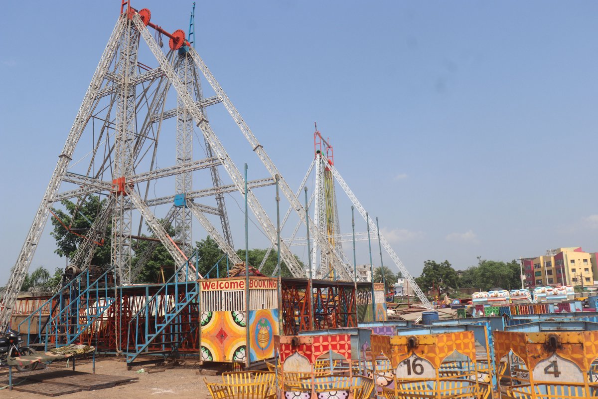 बांसवाड़ा . दशहरा मेला को लेकर बांसवाड़ा के कॉलेज ग्राउंड में लगाए जा रहे झूले।