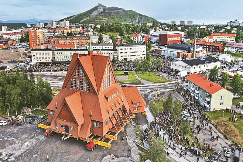 स्वीडन के उत्तरी शहर कीरूना में स्थित 113 साल पुराना लकड़ी से बना विशाल लूथरन चर्च, जमीन धंसने के खतरे के चलते नुकसान से बचाने के लिए स्थानांतरित किया जा रहा है। मंगलवार सुबह धार्मिक अनुष्ठान के बाद चर्च को 5 किमी दूर नए स्थान पर शिफ्ट करने की प्रक्रिया शुरू हुई। 1912 में बने इस चर्च को, जिसे स्वीडन के 1950 से पहले निर्मित सबसे सुंदर भवनों में गिना जाता है, विशाल ट्रेलरों और स्टील बीम पर धीरे-धीरे खिसकाकर नए शहर में पहुंचाया जाएगा। हजारों लोग इस अनोखे पल के गवाह बने। स्थानांतरण की प्रक्रिया लगभग दो दिन चलेगी। दरअसल, एक सदी से भी ज्यादा समय से चल रहे लौह अयस्क खनन के कारण जमीन में बनी दरारों से पुराना सिटी सेंटर धंस सकता है। कई दशकों से चल रहे एक विशाल अभियान में, यों तो आर्कटिक सर्कल से 145 किलोमीटर उत्तर में स्थित समूचा किरुना शहर स्थानांतरित किया जा रहा है, पर स्थानीय लोगों के लिए चर्च का स्थानांतरण इन सभी में सबसे शानदार और प्रतीकात्मक क्षण रहा। राज्य के स्वामित्व वाली खनन कंपनी एलकेएबी द्वारा संचालित लौह अयस्क की खदान जमीन को कमजोर कर रही है, जिससे शहर का अस्तित्व खतरे में है।