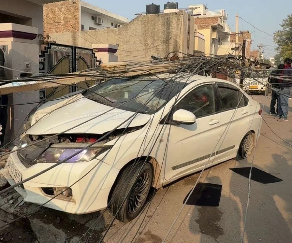 श्रीगंगानगर. जवाहरनगर सेक्टर नम्बर 7 में एक कार बेकाबू होकर सड़क किनारे लगे बिजली के खंभे से जा टकराई। हादसा गुरुवार सुबह करीब 9 बजे हुआ। टक्कर इतनी तेज थी कि बिजली का खंभा क्षतिग्रस्त हो गया, जबकि कार का अगला हिस्सा बुरी तरह टूट गया। इस वजह से गुरुवार को दिनभर पूरे मोहल्ले की बिजली सप्लाई ठप रही। जवाहरनगर थाना के एएसआई करणी सिंह ने बताया कि हादसे के समय कार में दो युवक सवार थे। दुर्घटना के तुरंत बाद दोनों युवक मौके पर ही कार छोड़कर फरार हो गए। तेज धमाके की आवाज सुनकर आसपास के लोग मौके पर एकत्रित हो गए। सूचना मिलने पर पुलिस मौके पर पहुंची और हालात का जायजा लिया। पुलिस ने क्षतिग्रस्त कार को जब्त कर जवाहरनगर थाना ले आई है। प्रारंभिक जांच में सामने आया है कि कार अनियंत्रित होने के कारण हादसा हुआ, हालांकि इसके वास्तविक कारणों की जांच की जा रही है। पुलिस के अनुसार फरार युवकों की पहचान कर ली गई है और वे जवाहरनगर क्षेत्र के ही बताए जा रहे हैं। जांच अधिकारी ने बताया कि क्षतिग्रस्त हुई कार को थाने में लेकर आए है। गुरुवार शाम तक विद्युत निगम की ओर से परिवाद नहीं मिला है।