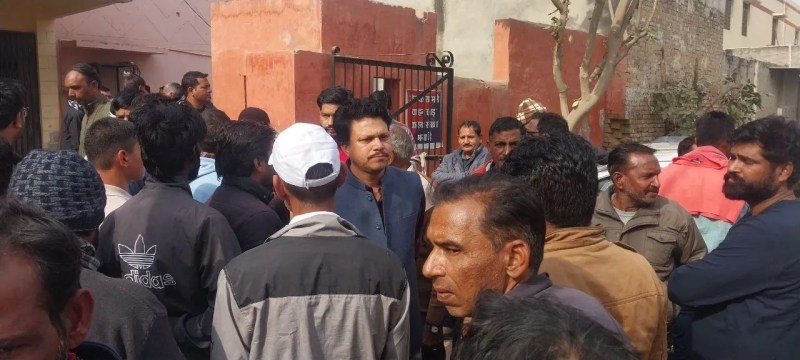 थाने के बाहर धरना, कड़ी सजा की मांग