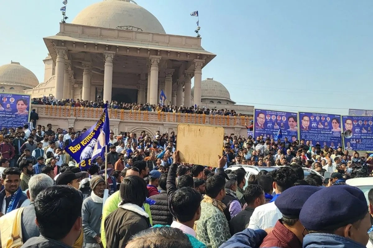 दोपहर 1:59 बजे आकाश आनंद पहुंचे। अंबेडकर प्रतिमा पर माल्यार्पण किया, दो मिनट खामोशी से खड़े रहे और ठीक 2:09 बजे बिना एक शब्द बोले वहां से निकल गए। मंच पर माइक था, भीड़ नारे लगा रही थी, लेकिन आकाश ने कुछ नहीं कहा। हजारों लोग भाषण का इंतजार करते रह गए।