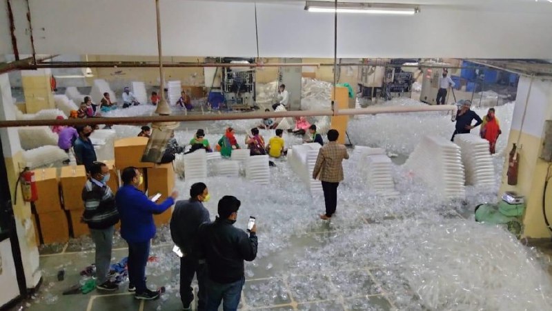 प्रतिबंधित सिंगल यूज़ प्लास्टिक डिस्पोजेबल ग्लास के निर्माण की अवैध फैक्ट्री की शिकायत मिलने पर नोएडा प्राधिकरण के जन स्वास्थ्य विभाग और जिला प्रशासन की ओर से सिटी मजिस्ट्रेट और प्रदूषण विभाग के अधिकारियों ने शनिवार को सेक्टर 63 स्थित प्लॉट नंबर सी-127 के बेसमेंट से अवैध में चल रही फैक्ट्री पर छापेमारी की गई। छापेमारी के दौरान पाया गया है कि उस फैक्ट्री में प्रतिबंधित सिंगल यूज प्लास्टिक डिस्पोजेबल ग्लास का भारी मात्रा में निर्माण किया जा रहा था। छापेमारी के दौरान फैक्ट्री से लगभग 350 कार्टून बॉक्स लगभग एक टन प्रतिबंधित सिंगल यूज प्लास्टिक डिस्पोजेबल ग्लास बरामद किए गए जिन्हे जब्त कर लिया गया।