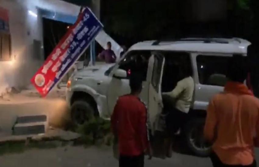 नोएडा। सेक्टर-45 में रात के समय उस वक्त हड़कंप मच गया जब एक तेज रफ्तार स्कार्पियो कार चौकी के अंदर घुस गई। कार की रफ्तार इतनी थी कि वह चौकी के बोर्ड और बाउंड्री वॉल को तोड़कर अंदर जा घुसी। गनीमत ये रही कि तेज़ रफ़्तार गाड़ी चौकी के बाहरी ओहदे से टकराकर रुक गयी, नहीं तो बड़ा हादसा हो सकता था।