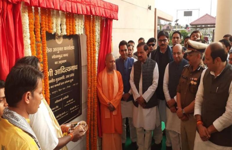 नोएडा। मुख्यमंत्री योगी आदित्यनाथ ने रविवार को करीब 35 करोड़ की लागत से बने नोएडा पुलिस कमिश्नर कार्यालय का उद्घाटन किया। इस दौरान उनके साथ केंद्रीय मंत्री सुरेश राणा, मंत्री जय प्रताप सिंह, सांसद डॉ महेश शर्मा व नोएडा विधायक पंकज सिंह समेत अन्य बड़े चेहरे मौजूद रहे। सीएम ने लोगों को संबोधित करते हुए कहा कि उत्तर प्रदेश बदल रहा है। प्रदेश में 5 लाख करोड़ रुपये के निवेश का प्रस्ताव मिला है। लखनऊ डिफेंस एक्सपो में 50 हजार करोड़ का प्रस्ताव मिला है। अभी तक प्रदेश में 1 लाख 37 हजार पुलिस बल की भर्ती हो चुकी है। सरकार में पुलिस की बुनियादी सुविधाएं बढ़ी हैं और ट्रेनिंग मजबूत हुई है।