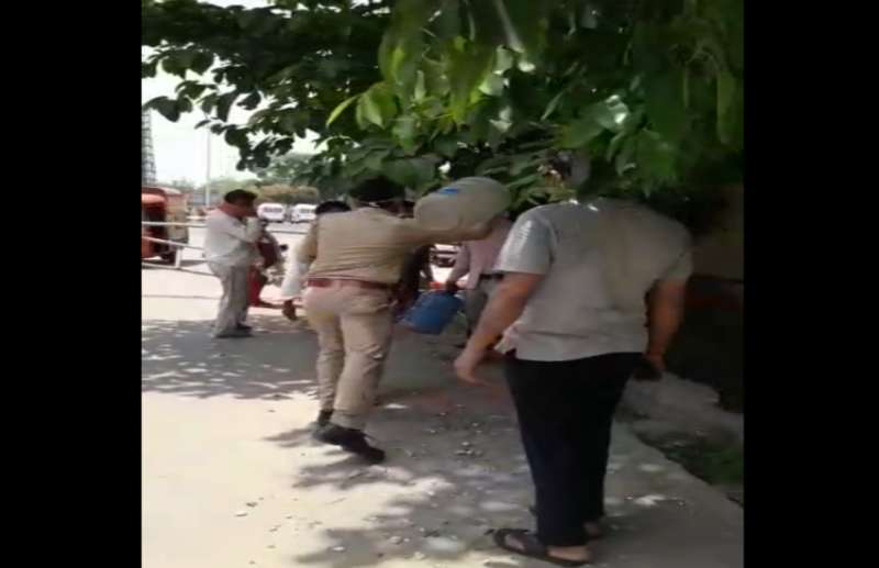 नोएडा। पानी लेने जा रहे युवक के साथ वहां तैनात पुलिसकर्मी ने जमकर लात-घूंसे बरसाए। घटना नोएडा के सेक्टर-22 में शनिवार को हुई। मौके पर मौजूद शख्स ने मारपीट का वीडियो बनाकर सोशल मीडिया पर वायरल कर दिया। पुलिस कमिश्नर ने वीडियो का संज्ञान लेते हुए जांच कराई। जिसके बाद सिपाही को अनुशासनहीनता और दुर्व्यवहार करने दोषी पाये जाने पर निलंबित कर दिया गया। विभागीय कार्यवाही करने के निर्देश ज्वांइंट सीपी हैडक्वार्टर को दिया गया है।