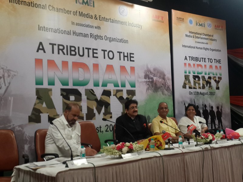 नोएडा. भारत के वीर सपूतों को याद करते हुए शुक्रवार को एक विशेष कार्यक्रम का आयोजन किया गया। जिसमें शहीदों को याद करते हुए लोगों की आखें नम हो गईं। दरअसल, सेक्टर-16 स्थित फिल्म सिटी के मारवाह स्टूडियो में सैनिकों को श्रद्धांजलि देने के लिए एक कार्यक्रम का आयोजन किया गया। कार्यक्रम का आयोजन इंटरनेशनल चेंबर ऑफ मीडिया एंड एंटरटेनमेंट इंडस्ट्री और इंटरेशनल ह्यूमन राइट्स ऑर्गनाइजेशन ने किया।