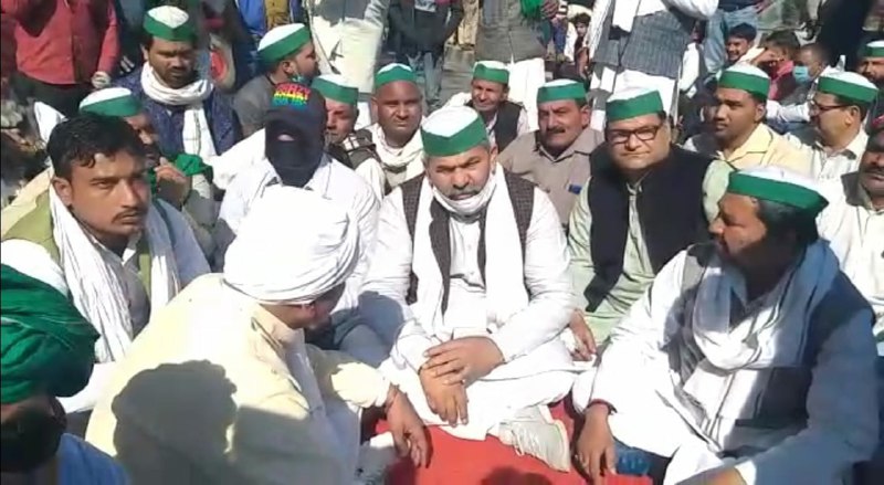 मुजफ्फरनगर-मेरठ हाइवे पर किसानाें के साथ बैठे भाकियू के प्रदेश प्रवक्ता राकेश टिकैत