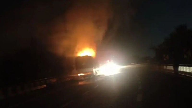 छठ मनाने जा रहे यात्रियों से भरी पैसेंजर बस में लगी आग