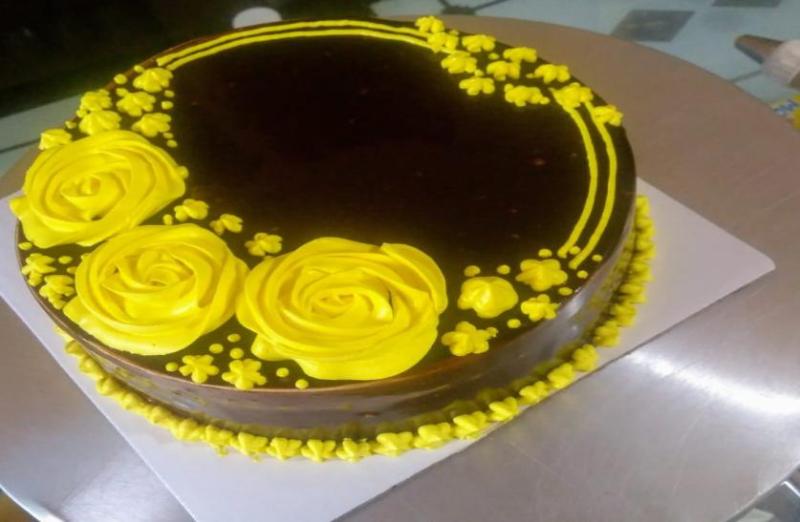 इसके बाद एक बॉउल में क्रीम और आइसिंग शुगर को मिलायें और उसे अच्छी तरह से फेंट लें। अब एक तेज चाकू की सहायता से केक को बीच में से काट लें। कटे हुए भाग में तैयार क्रीम लगाएं,फिर केक के दोनों भागों को आपस में मिला दें। अब बची हुई क्रीम को एक चाकू की मदद से केक के ऊपर लगाएं। उसके बाद केक को चेरी और चॉकलेट फ्लेक्स से गॉर्निश करें और टुकड़ों में काटकर सर्व करें।