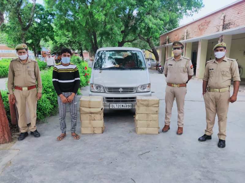 जेवर कोतवाली के प्रभारी उमेश बहादुर मे बताया कि थाना जेवर पुलिस कि टीम दयानतपुर अण्डरपास के पास वाहनों कि चेकिंग कर रही थी। उसी दौरान एक इको कार आई जब पुलिस टीम ने उसे रोक कर चेकिंग करनी चाही तो कार सवार कार को लेकर भागने लगा। पुलिस टीम ने घेर कर कार चला रहे युवक को दबोच लिया। कार की तलाशी में 10 पेटी शराब बरामद हुई। पूछताछ के दौरान आरोपी कि पहचान जेवर के गाँव डुढेरा के निवासी सुनील पुत्र विजय के रूप में हुई।
