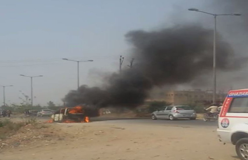 दरअसल, गाजियाबाद के थाना कविनगर इलाके में मंगलवार की सुबह जब सब लोग अपने काम पर जा रहे थे। तब अचानक ही आत्माराम स्टील तिराहा लाल कुआं के पास सड़क पर चलती हुई एक वैगन-आर कार आग का गोला बन गई। जैसे ही कार में सवार लोगों ने कार में लपट उड़ते हुए देखा तो बड़ी मुश्किल से कार से कूद कर अपनी जान बचाई। हालांकि आसपास के लोगों ने भी कार में लगी भीषण आग को काफी बुझाने का प्रयास किया। लेकिन देखते ही देखते आग ने गाड़ी को पूरी तरह अपनी चपेट में ले लिया और कार धू-धू कर जलने लगी।