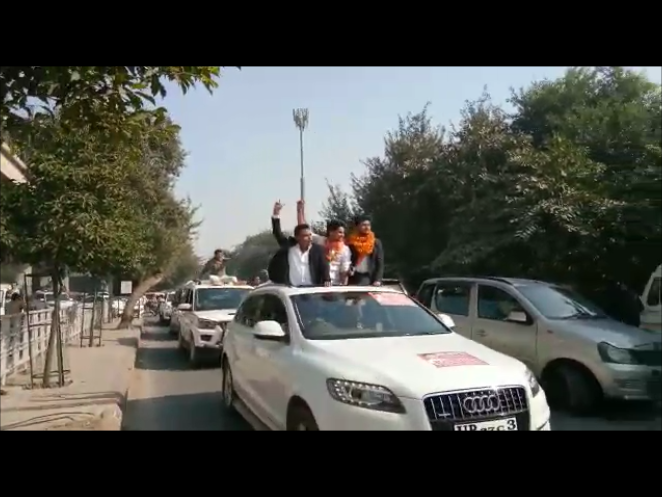 नोएडा। जब सत्ता का साथ हो तो नियम-कानून की परवाह किसे होती है। ऐसा ही नजारा नोएडा में राजकीय डिग्री काॅलेज में छात्रसंघ चुनावों में देखने को मिल रहा है। नामांकन प्रकिया के दौरान सोमवार को अखिल भारतीय विद्यार्थी परिषद (एबीवीपी) के सदस्यों ने खूब हंगामा किया। लाखों रुपये की ऑडी व फॉर्च्यूनर समेत कई महंगी गाड़ियों पर लगे हूटर बजाते हुए प्रत्याशी नोएडा की सड़कों से गुजरे। इतना ही नहीं चलती गाड़ियों की छत पर खड़े होकर शोर-शराबा करने कर रहे छात्रों की वजह से नोएडा के सिटी सेंटर पर जाम की स्थिति भी बन गई। इसके बावजूद वहां मौजूद पुलिस मूकदर्शक बनी रही।