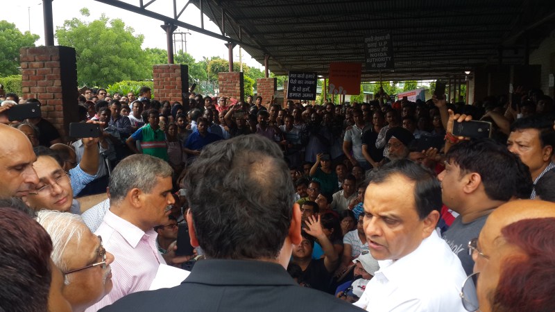 जेपी अधिकारियों का विश्वास खो चुके निवेशकों को जब सवालों का जवाब नहीं मिला तो वह मनोज गौड़ के पीछे गए। इस दौरान मनोज के साथ आए बाउंसरों ने निवेशकों को रोकने की कोशिश की। गुस्साए निवेशकों व बाउंसरों के बीच जमकर धक्का-मुक्की हुई। किसी तरह मनोज गौड़ वहां से निकल गए। इस दौरान निवेशकों ने जमकर जेपी के खिलाफ नारेबाजी की। परेशान निवेशकों ने स्पष्ट कहा कि उन्हें आस थी कि मोदी सरकार आने के बाद उन्हें अपने घर जरूर मिल जाएंगे। लेकिन ऐसा हुआ नहीं। यदि वह अपना वोट बैंक बचाना चाहते हैं तो एक बार उनसे मिलना चाहिए था। निवेशकों ने बताया कि रविवार को वह दिल्ली स्थित बीजेपी मुख्यालय का घिराव करेंगे।