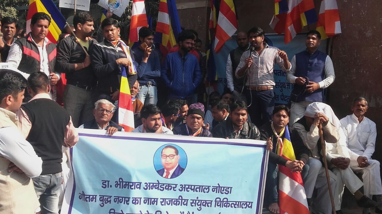 नोएडा। शहर के डॉक्टर भीमराव आंबेडकर जिला अस्पताल का नाम बदलने से नाराज दलित समाज के लोगों में सेक्टर-30 स्थित जिला अस्पताल में जमकर हंगामा किया। इस दौरान प्रदर्शनकारियों ने सरकार के खिलाफ जमकर नारेबाजी की। वहीं प्रदर्शन करने से पहले प्रदर्शनकारियों ने शहर में प्रदर्शन रैली भी निकाली। वहीं इसकी सूचना पर मौके पर पहुंची पुलिस ने कड़ी मश्क्कत के बाद प्रदर्शनकारियों को शांत करा दिया।