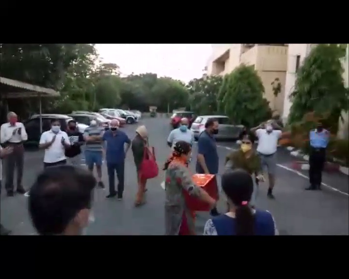 सोसाइटी के गेट पर ही वेलकम लिखा गया। फिर गेट पर रोककर तिलक लगाया गया और आरती की गई। माला पहनाई गई और पुष्प वर्षा करते हुए शंखनाद किया गया। सभी लोगों ने ताली बजाकर स्वागत किया। यह देखकर हॉस्पिटल से डिस्चार्ज होकर आई महिला का हौसला बढ़ गया। सेक्टर-34 के नर विहार 2 अपार्टमेंट निवासी सूजी जॉय पिछले माह कोरोना संक्रमित पाई गई थी। वह साकेत दिल्ली के मैक्स अस्पताल में स्टाफ नर्स के रूप में कार्यरत हैं। कोविड-19 पॉजिटिव पाए जाने पर उनका लगभग 15 दिन ग्रेटर नोएडा के शारदा अस्पताल में उपचार चला।