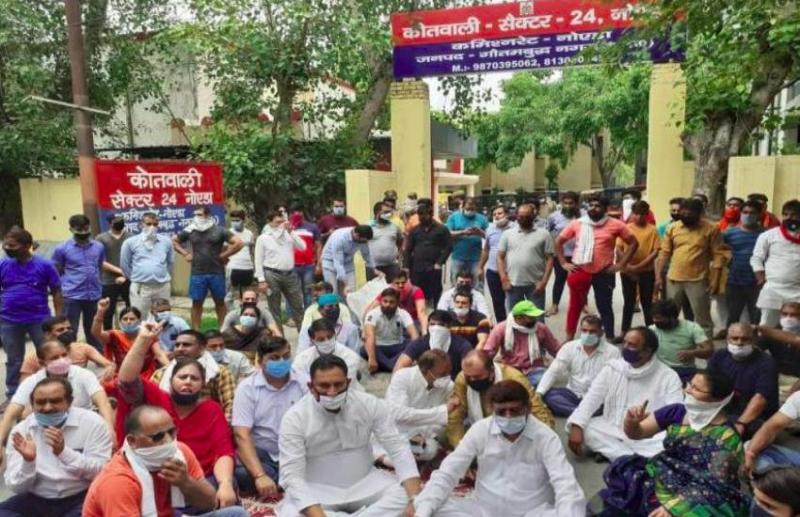 नोएडा। भारतीय जनता पार्टी के पूर्व महानगर अध्यक्ष को पुलिस द्वारा गिरफ्तार किए जाने पर पार्टी के नेता व कार्यकर्ताओं ने जमकर हंगामा काटा। वहीं सूचना मिलते ही वर्तमान महानगर अध्यक्ष मनोज गुप्ता के नेतृत्व में भारी संख्या में भाजपा नेता थाना सेक्टर-24 पहुंचे और पुलिस पर गंभीर आरोप लगाकर धरने पर बैठ गए। आरोप है कि पुलिस ने रंजीश मानते हुए पूर्व अध्यक्ष नरेश शर्मा को गलत ढंग से फंसाया और गिरफ्तार कर लिया।