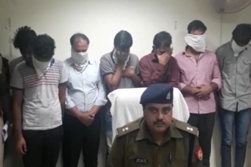 पुलिस की गिरफ्त में खड़ा आरोपी अक्षय त्रिपाठी, सन्दीप, अंकित, तनुज कुमार, सूरज कुमार, दीपक और कुणाल कोहली है।जिन्हे साइबर क्राइम सेल और नोएडा की एक्सप्रेसवे थाना पुलिस ने बेरोजगार युवकों को नौकरी दिलाने के नाम ठगी करने के आरोप गिरफ्तार किया है।इनका एक साथी फरार चल रहा है, जिसका नाम सुमित कुमार है । जिसको लेकर पुलिस दबिश दे रही है।पुलिस पूछताछ में सामने आया कि ये बड़े ही शातिर ठग है । जो बेरोजगार लोगों को नौकरी देने के नाम पर रजिस्ट्रेशन शुल्क के रूप में पैसे लेना व फ़र्ज़ी कागजात तैयार कर लोगों से धोखाधड़ी करते थे।आरोपी पुलिस से बचने के लिए फर्जी आईडी के सिम से कालिंग करकर बेरोजगार व्यक्तियों को नौकरी का झांसा देकर उनसे सेवा शुल्क के नाम पर विभिन्न खातों में रुपया जमा करवाते थे।इसके बाद फोन कर दूसरे बेरोजगार को अपना शिकार बनाने में जुट जाते थे।
