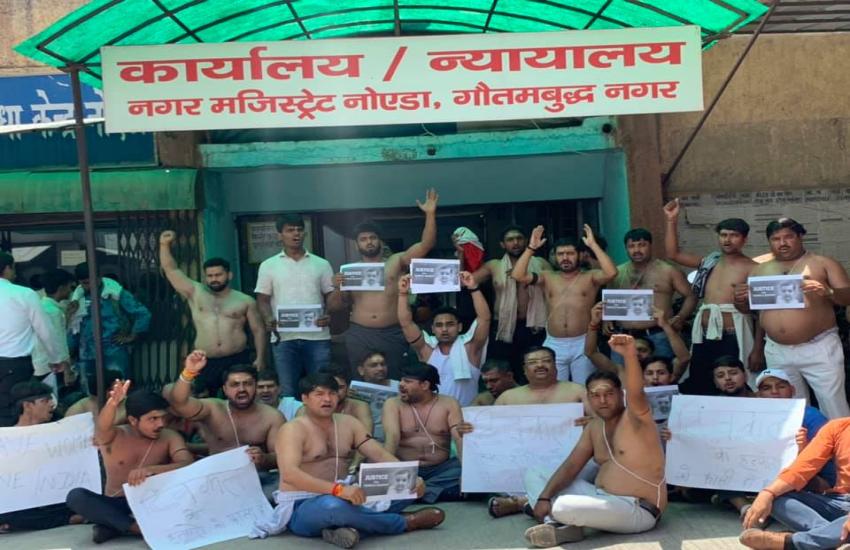 नोएडा। अलीगढ़ के टप्पल में मासूम के साथ हुई दरिंदगी के बाद देशभर के लोगों में उबाल है। जगह-जगह लोग प्रदर्शन और कैंडल मार्च निकालकर आरोपियों को फांसी देने की मांग कर रहे हैं। इसी कड़ी में राष्ट्रीय ब्राह्मण महासंघ के तत्वावधान में सर्व ब्राह्मण समाज ने सोमवार को सेक्टर-19 स्थित सिटी मजिस्ट्रेट कार्यालय पर अर्धनग्न प्रदर्शन किया। प्रदर्शन के बाद लोगों ने मुख्यमंत्री योगी आदित्यनाथ को संबोधित ज्ञापन सिटी मजिस्ट्रेट को सौंपा।