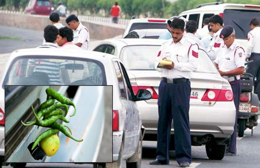 नोएडा. बुरी नजर से बचने के लिए वाहनों पर नींबू-मिर्च या काला रिबन लटकाने वालों के खिलाफ अब दिल्ली पुलिस सख्ती से निपटेगी। बता दें कि कुछ लोग वाहन की नंबर प्लेट पर नींबू-मिर्च या काला रिबन बांधने का टोटका करते हैं, जिससे वाहन के नंबर देखने में ट्रैफिक पुलिस कर्मियों परेशानी होती है। इसके साथ ही सीसीटीवी कैमरों में भी नंबर ठीक से नजर नहीं आते हैं और वाहन चालक यातायात के नियम तोड़कर भी आसानी से बच जाते हैं। लेकिन अब दिल्ली पुलिस नेे ऐसे वाहनों के खिलाफ कार्रवाई की तैयारी कर ली है। दिल्ली यातायात पुलिस के विशेष आयुक्त डॉ. मुक्तेश चंद्र ने इन वाहनों के खिलाफ सख्त कार्रवाई के आदेश जारी किए हैं।