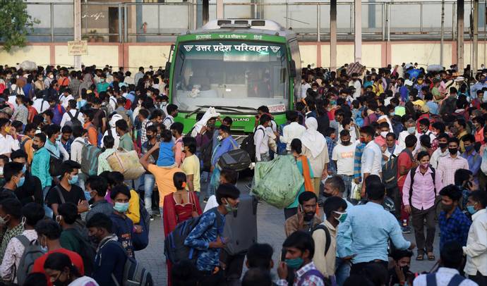 बता दें कि कोरोना के बढ़ते मामलों के बाद दिल्ली सरकार ने सोमवार रात 10 बजे से 1 हफ्ते के लिए सम्पूर्ण लॉकडाउन का ऐलान किया है। जिसके बाद दिल्ली-एनसीआर के तमाम बस अड्डों और रेलवे स्टेशनों पर एक बार फिर दूर दराज से इन बड़े इमारतों वाले शहर नोएडा में अपने सपनों को तराशने आये मजदूरों की भीड़ लग गयी है। लोग अपने घरों की ओर जल्दी से जल्दी जाना चाहते हैं। पलायन कर रहे मजदूरों का कहना है कि उनको सरकारों पर भरोसा नहीं है। नीरज दिवाकर नामक व्यक्ति ने कहा कि जो सरकार एक साल बाद भी कोरोना के लिए तैयारी नहीं कर पाई, आखिर वो कैसे हमारा ख्याल रखेगी। मजदूरों के भीड़ की तस्वीरें एक बार फिर से पिछले साल लॉकडाउन के दौरान मजदूरों के पलायन की याद दिलाती हैं।
