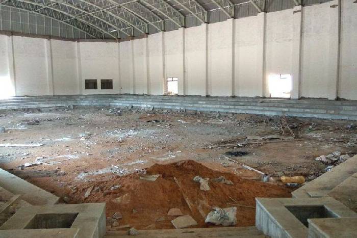 कांग्रेस सरकार के शासन काल में राजीव गांधी खेल संकुल के तहत मल्टीपरपज इण्डोर हॉल के लिए 26 सितम्बर 2011 को स्वीकृति जारी कर 6 करोड़ 51 लाख रुपए के बजट का प्रावधान किया गया था। जिसका निर्माण अप्रेल 2016 तक पूर्ण होना था। लेकिन अभी 40 फीसदी काम अधूरा पड़ा है। सरकार ने इण्डोर हॉल निर्माण की प्रथम किश्त 1 करोड़ 80 लाख रुपए 23 दिसम्बर 2012 को और द्वितीय किश्त 2 करोड़ 40 लाख रुपए 13 मई 2016 उपलब्ध कराए थे। इसके बाद सरकार ने शेष बजट जारी नहीं किया है। इस कारण काम बंद पड़ा है। जिला खेल अधिकारी ने इसकी रिपोर्ट सरकार को भेज दी है।