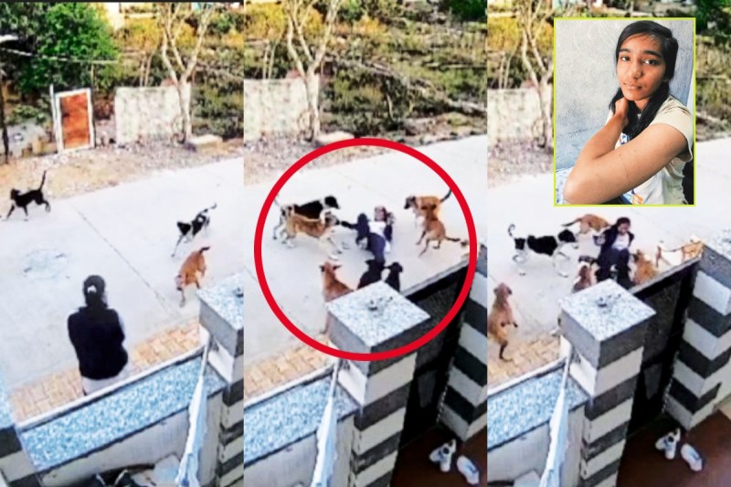 अलवर शहर की जेके नगर कॉलोनी में शुक्रवार शाम घर के बाहर टहल रही कॉलेज छात्रा नव्या अग्रवाल (18) पर कुत्तों के झुंड ने हमला कर दिया। कुत्तों से घिरा देख नव्या सड़क पर गिर गई और चिल्लाने लगी। इस दौरान 8 कुत्ते उसके हाथ-पैर नोंचते रहे। कुत्तों ने उसके शरीर पर 12 जगहों पर काटा। चीख-पुकार सुन कर परिवार के लोग बाहर निकले और कुत्तों को भगाया। नव्या को बेहोशी की हालत में अस्पताल में भर्ती कराया गया। इस पूरे घटनाक्रम का वीडियो सोशल मीडिया पर वायरल हो रहा है।