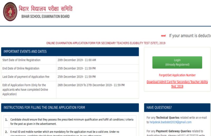Bihar STET 2019 Admit Card डाउनलोड करने के लिए यहां क्लिक करें