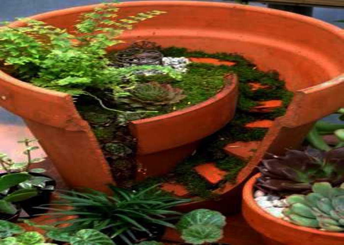 अगर आपके भीतर रचनात्मकता है तो आप टूटे गमलों से भी कल्पना का हरा-भरा संसार रच सकती हैं। सबसे बड़े गमले में मिट्टी और मॉस डालें और फिर टूटे गमलों से सीढिय़ां बनाएं। अपनी कल्पनाशीलता से सजाएं।