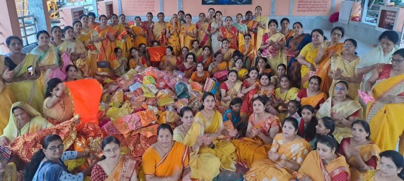 खंडवा. गुरु पूर्णिमा पर्व के लिए चादर पैकिंग की सेवा करतीं महिलाएं।