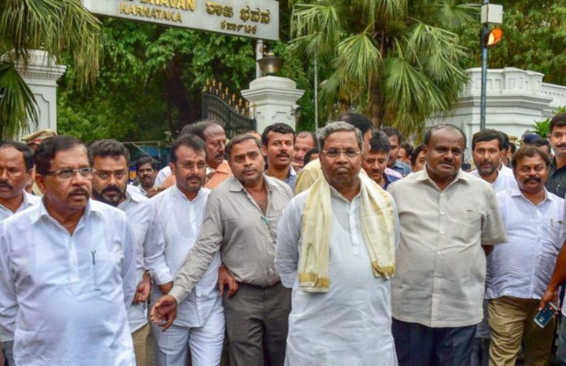 सत्ता की दौड़ में पिछड़ी कांग्रेस ने जद (एस) के नेता कुमारस्वामी को मुख्यमंत्री बनने का प्रस्ताव दिया है। कांग्रेस व जद (एस) के एक साथ जाने के फैसले के बावजूद भाजपा भी अपनी सरकार बनाने को लेकर आश्वस्त दिखती है। इस दक्षिण भारतीय प्रदेश में ऐसी राजनीतिक परिस्थितियां कोई नई बात नहीं है। पहले भी जब भाजपा सत्ता में आई थी, तब वह ११० सीटों पर सिमट गई थी। हालांकि तब निर्दलीयों का सहारा उसको बहुमत की तरफ ले गया था। बेंगलूरु के म्युनिसिपल चुनाव में भी भारतीय जनता पार्टी सबसे बड़ी पार्टी के रूप में उभरी थी, लेकिन कांग्रेस व जद (एस) ने मिलकर बोर्ड बनाया। अब जो हालात बने हैं, उनमें कांग्रेस का मुख्य मकसद कर्नाटक में भाजपा को सत्ता से बाहर रखना है। इसीलिए वह तीसरे नंबर की पार्टी को भी मुख्यमंत्री पद सौंपने को तैयार है।