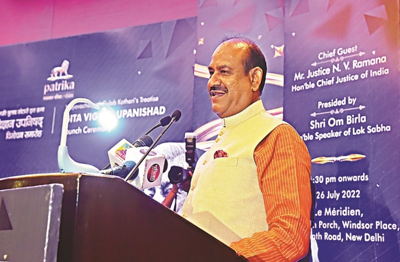 लोकसभा अध्यक्ष ओम बिरला ने पिछले दिनों नई दिल्ली में पत्रिका समूह के प्रधान संपादक गुलाब कोठारी के लिखे ग्रंथ 'गीता विज्ञान उपनिषद' के विमोचन समारोह की अध्यक्षता की। इस अवसर पर बिरला ने भगवान कृष्ण के गीता में दिए गए उपदेशों और निष्काम कर्म योग के महत्त्व की चर्चा की। उनके उद्बोधन के प्रमुख अंश: