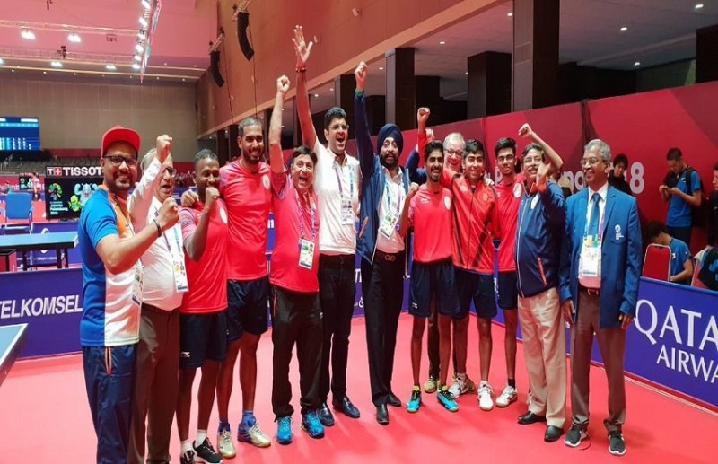 नई दिल्ली। भारतीय पुरूष टेबल टेनिस टीम को 18वें एशियाई खेलों के सेमीफाइनल में मंगलवार को कोरिया के खिलाफ 0-3 से हार का सामना करना पड़ा जिससे उसके हाथ कांस्य पदक लगा। लेकिन यह कांस्य पदक ऐतिहासिक रहा क्योंकि एशियाई खेलों के इतिहास में इस खेल में भारत का यह पहला पदक है। बताते चले कि एशियाई खेलों का ये 18वां आयोजन है। इससे पहले हुए 17 आयोजनों में से किसी में भी भारत को टेबल टेनिस में कोई भी पदक नहीं मिल सका था।