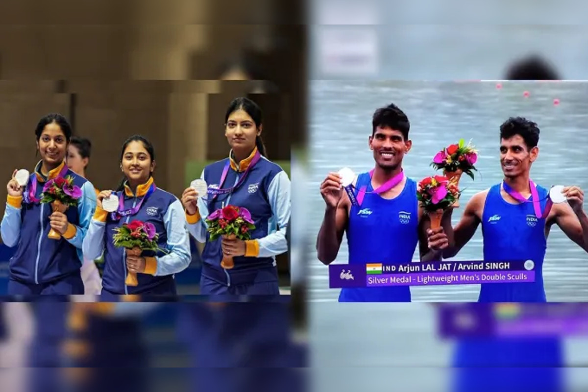 Asian Games 2023: एशियन गेम्स 2023 में रविवार को भारत ने शानदार शुरुआत करते हुए मेडल का पंजा लगाया है। भारत ने अभी तक 2 सिल्वर और 3 ब्रॉन्ज समेत कुल 5 पदक अपने नाम कर लिए हैं। भारत ने शूटिंग और रोइंग में एक-एक सिल्वर तो रोइंग में ही 2 ब्रॉन्ज और शूटिंग में ही 1 कांस्य पदक जीता है। भारत ने एशियन गेम्स मेडल का खाता शूटिंग में सिल्वर के साथ खोला है। भारत के लिए पहला मेडल महिला 10 मीटर एयर राइफल टीम इवेंट में रजत पदक के रूप में आया। ये पदक मेहुली घोष, आशी चौकसी और रमिता ने 1886 के स्कोर के साथ जीता। जबकि इस स्पर्धा का स्वर्ण पदक चीन ने अपने नाम किया।