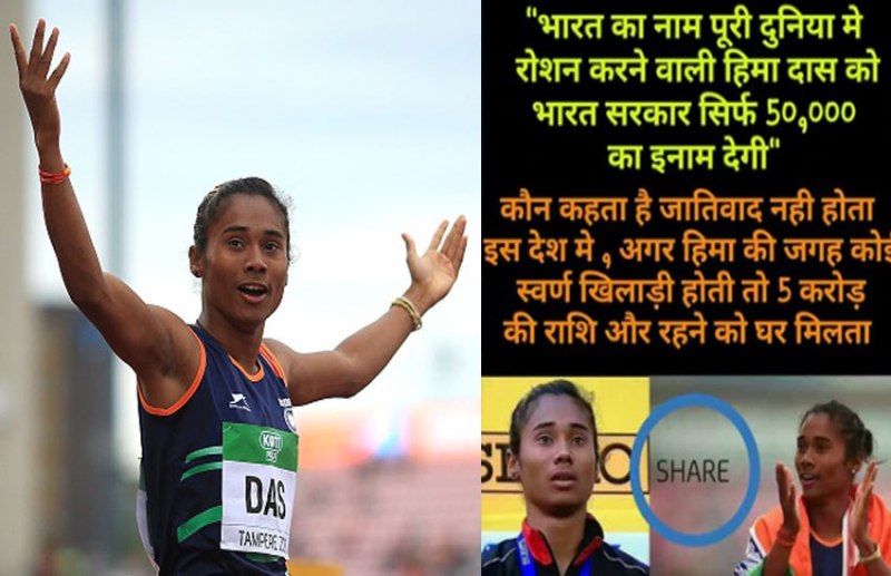 दलित होने के कारण हिमा को मिले मात्र 50 हजार, जानें सोशल मीडिया पर फैल रहे इस मैसेज की हकीकत