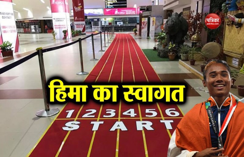 कुछ इस अंदाज़ में हुआ गुवाहाटी एयरपोर्ट पर हिमा दस का स्वागत, बिछाई 'रेड ट्रैक कार्पेट'
