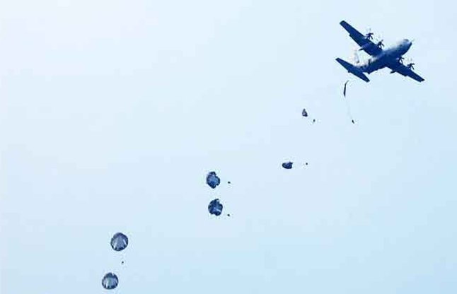 पैराजंपिंग की। इससे पहले सेना ने ड्रॉपिंग ग्राउंड की